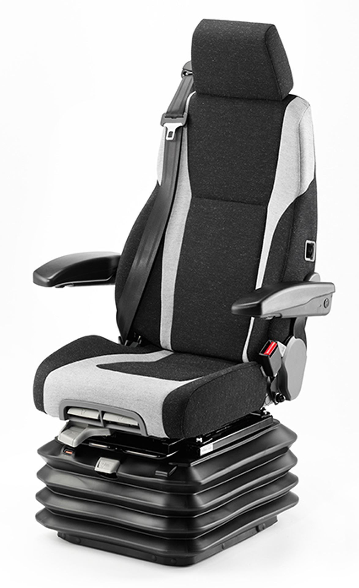 The 65/K4B is a high back air suspension seat from the 600 series range. It is assembled with a wide platform for improved stability and reduced free-play in heavy duty applications. The adjustable seat base cushion and seat heating comes as standard, to offer exceptional driver comfort. An integrated 3-point seat belt is fitted. Specifications: